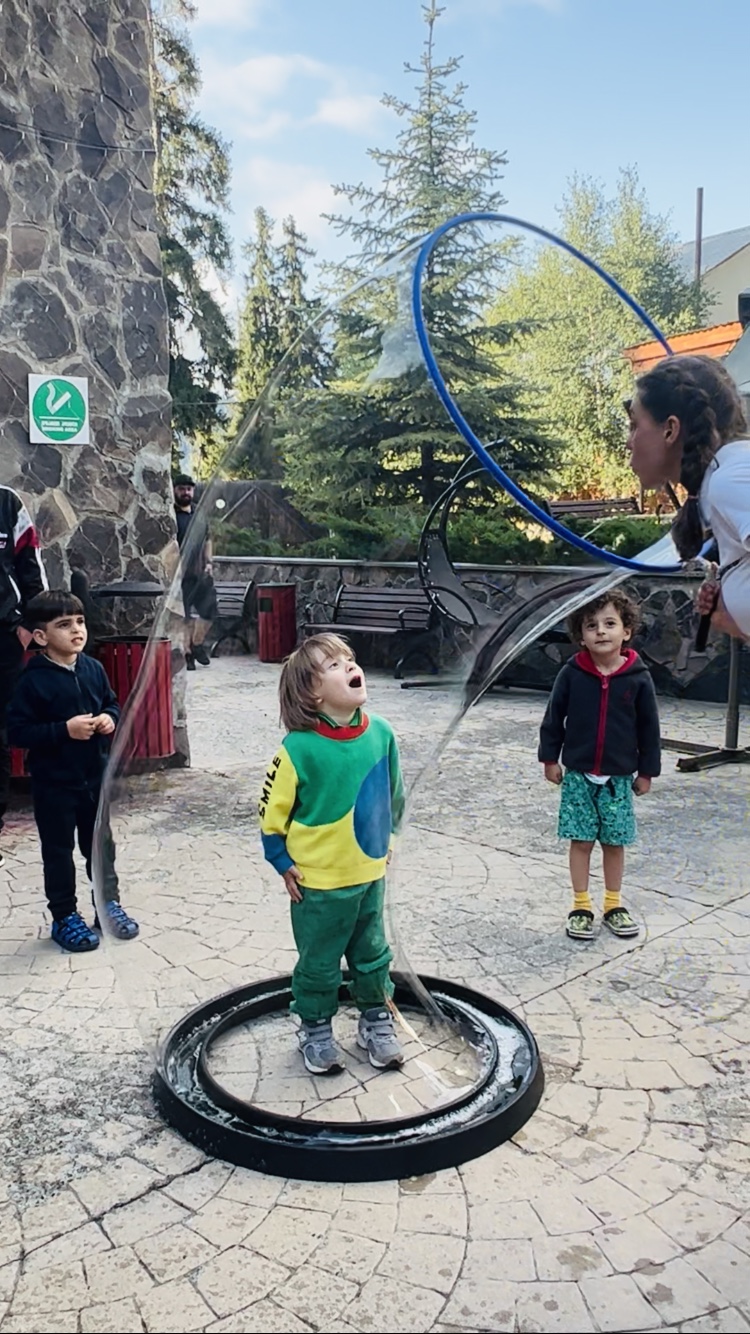 Конечно самый завораживающий и захватывающий дух момент праздника — это гигантские мыльные пузыри, внутри которых может оказаться любой участник праздника!